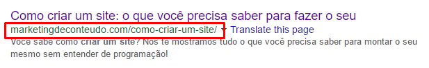 A URL é o endereço da sua página e também é mostrada na página de resultados do Google: